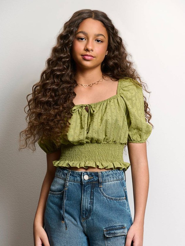 Essa bata boho green é puro charme, com caimento fluido e toque artesanal. O tecido com poá texturizado adiciona dimensão e deixa a peça visualmente rica. O decote amplo e as mangas longas bufantes reforçam o mood boho delicado, enquanto o babado na barra finaliza com leveza. Versátil e confortável, funciona no dia a dia ou em produções mais elaboradas, sendo perfeita para quem ama peças estilosas, leves e com presença. Ref.: R5697
