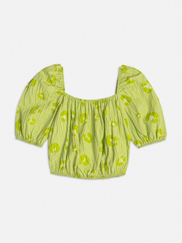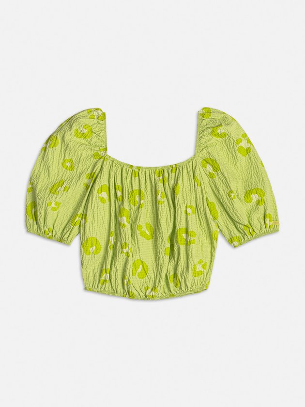 O cropped lima I Am é confeccionado em tecido texturizado, proporcionando um visual diferenciado. Apresenta estampa animal print, seguindo a tendência atual. Seus acabamentos são feitos com elástico, garantindo um ajuste confortável. Essa peça é moderna e estilosa, perfeita para compor looks ousados e fashionistas. Composição: 58% algodão, 40% viscose e 2% elastano. Ref.: R3778