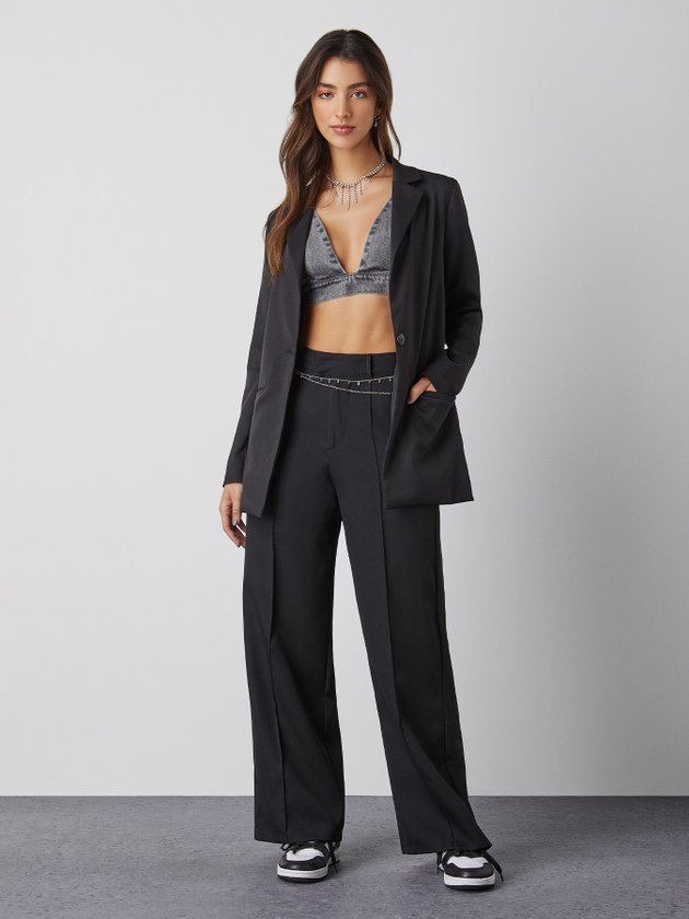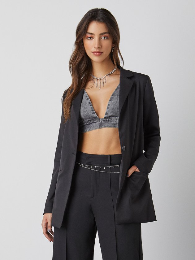 O blazer feminino Authoria foi confeccionado em alfaiataria na cor preta, com modelagem alongada ele traz em seus detalhes forro interno de tecido, abertura com caseado e botão e bolso frente embutido. Os looks com esse blazer podem ser feitos t-shirt básica, calça jeans ou de alfaiataria. Composição: 95% poliéster e 5% elastano. Ref.: T8840