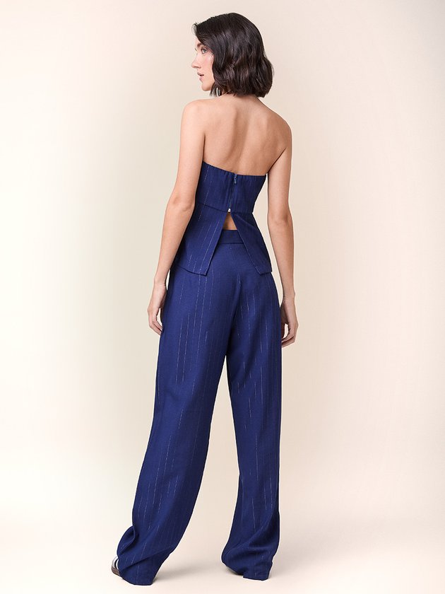 Blusa Azul com Risca de Giz