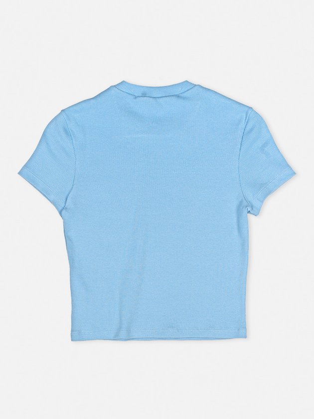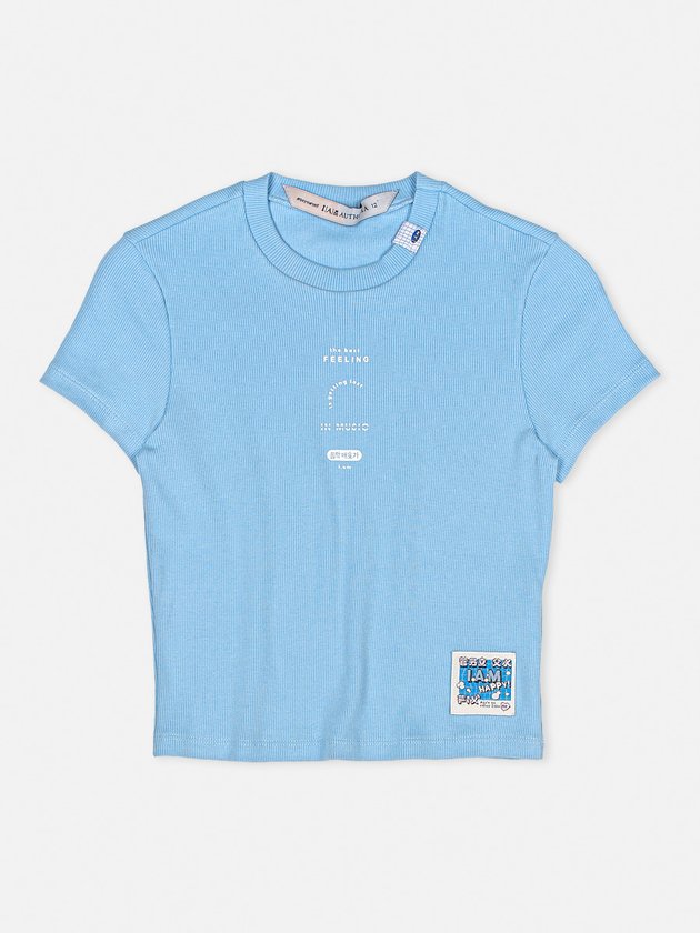 A blusa I'am foi desenvolvida em malha canelada na cor azul, uma peça fashionista e com detalhes que farão dela o destaque do look, conta com modelagem baby look e estampa na parte da frente. Faz diversas composições com calças, saias ou shorts. Composição: 98% Poliéster e 2% Elastano. Ref.: R3251