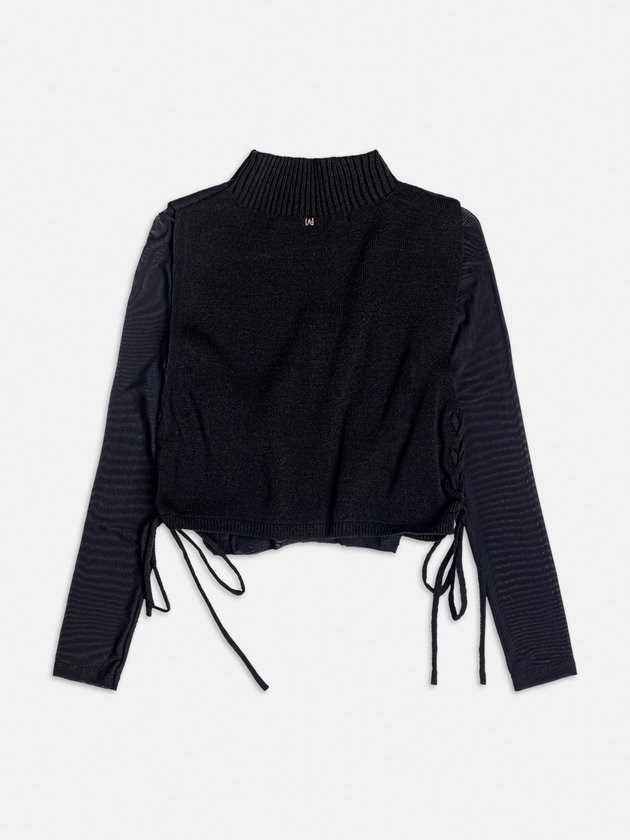 Deslumbre-se com a blusa I Am. A peça possui as mangas em tule e a parte da blusa em tricot elevando o visual na cor preta, conferindo conforto e um toque especial. Ideal para fashionistas que buscam destacar-se com um look sofisticado. Composição: Blusa: 96% poliamida, 4% elastano. Ref.: R4373