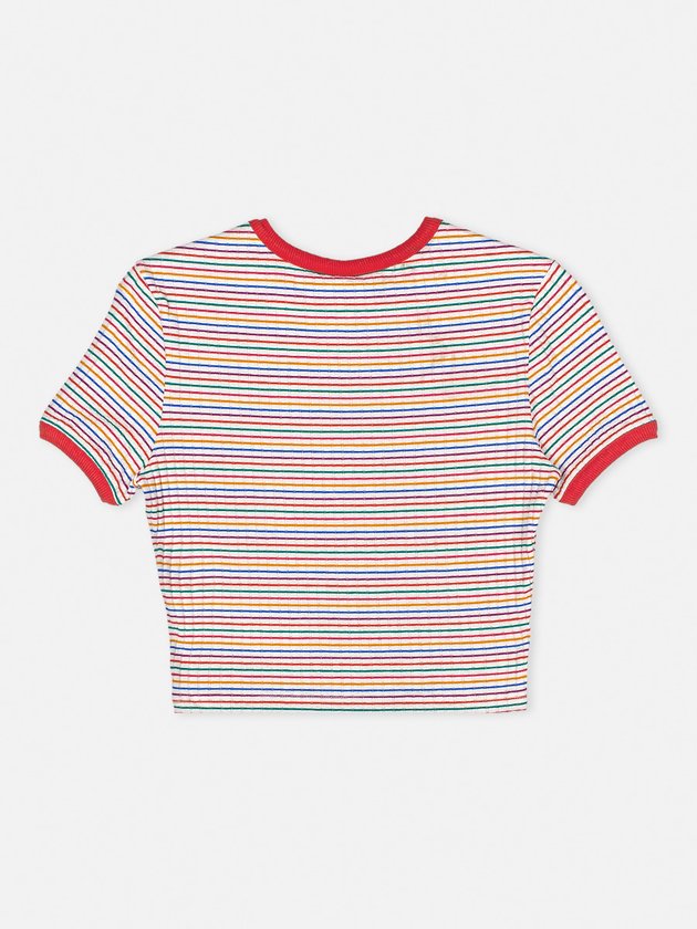 A blusa listrada I’am foi desenvolvida em malha colorida. Traz nos detalhes modelagem baby look, acabamentos na cor vermelha e etiqueta decorativa na barra. Uma peça super versátil que é ótima para usar no dia a dia. Composição: 95% viscose e 5% linho. Ref.: R3221