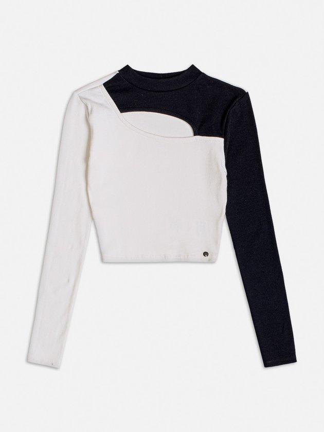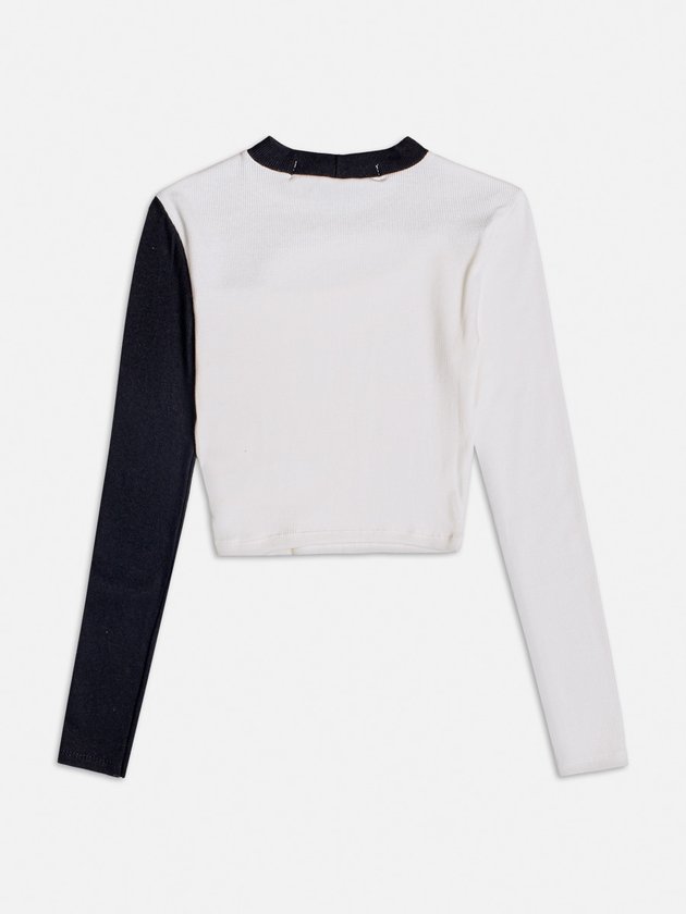Blusa Manga Longa Bicolor com Abertura