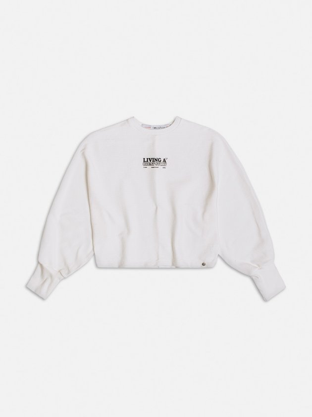 Confortável e estilosa, esta blusa off white em ribana com mangas amplas traz um toque moderno ao visual. A textura canelada e as mangas amplas garantem um visual sofisticado e casual, ideal para combinar com calças ou saias em looks despojados e elegantes.