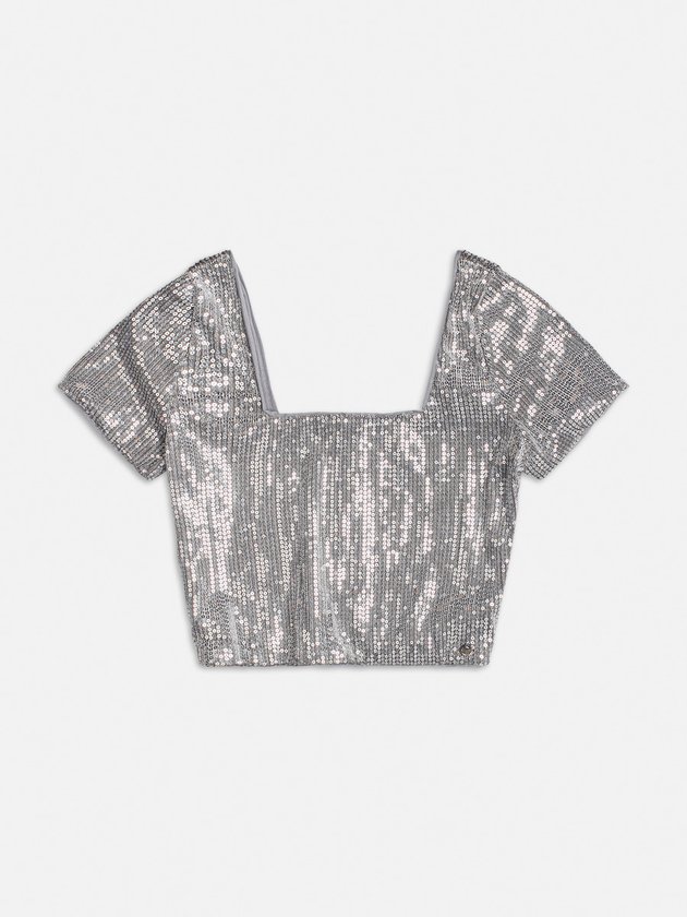 Cropped de Paetê Prata
