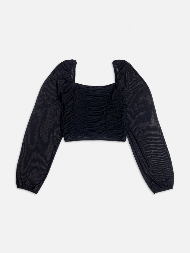Blusa Preta de Tule com Franzidos