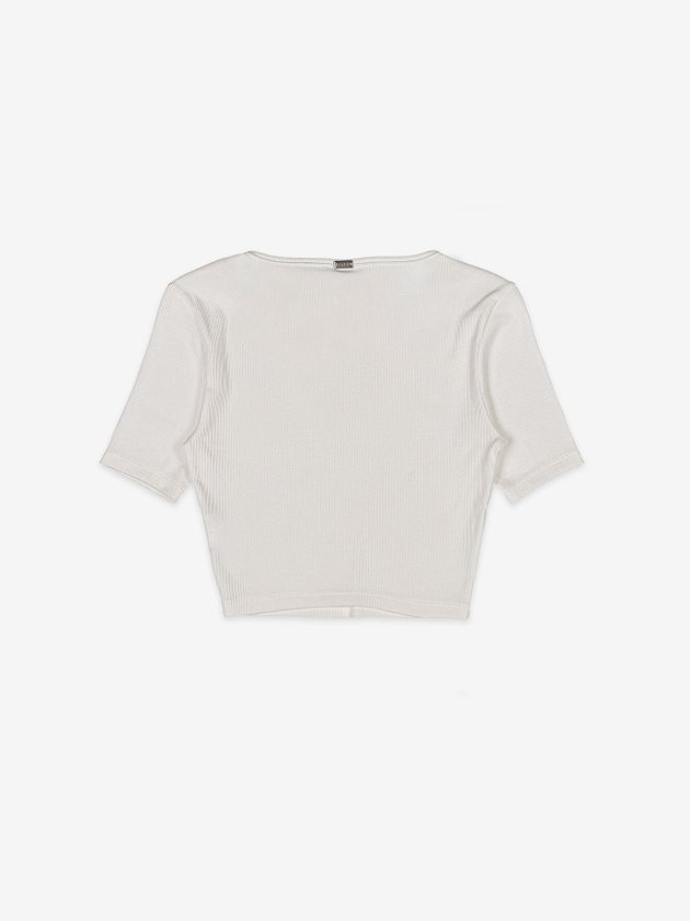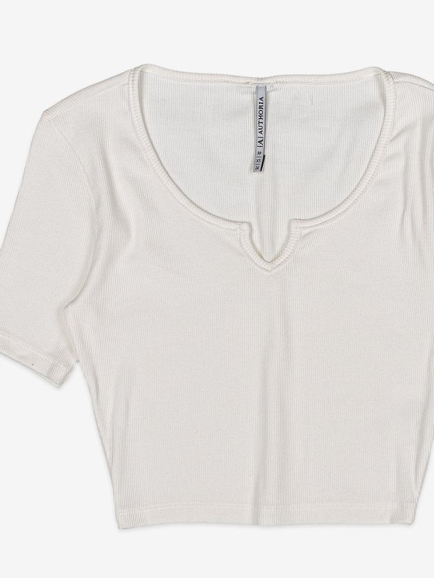 A blusa Authoria foi desenvolvida em ribana na cor pérola com decote V. Nos detalhes traz manga curta e plaquinha de metal na parte das costas. Uma peça super versátil e ideal para ser usada em dias mais quentes. Composição: 98% algodão e 2% elastano. Ref.: T8443
