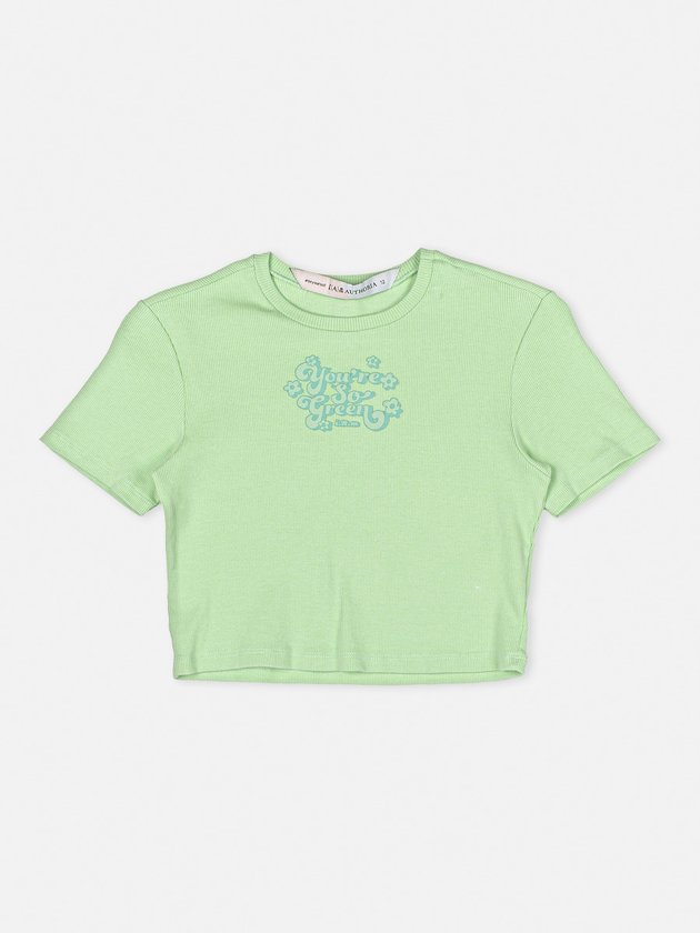 A Blusa Canelada I'am foi desenvolvida em malha canelada na cor verde, uma peça fashionista e com detalhes que farão dela o destaque do look, conta com modelagem baby look e estampa na parte da frente. Faz diversas composições com calças, saias ou short. Composição: 98% Poliéster e 2% Elastano. Ref.: R3093