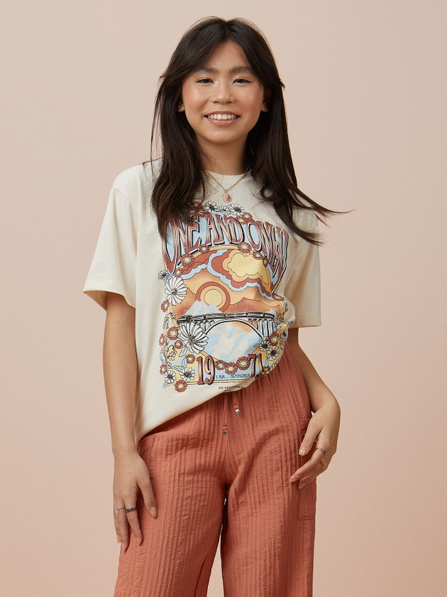 Moderna e versátil, esta blusa tee creme estampada é uma peça curinga para o guarda-roupa. A estampa divertida adiciona personalidade e permite composições variadas, garantindo um visual casual e cheio de atitude para o dia a dia.