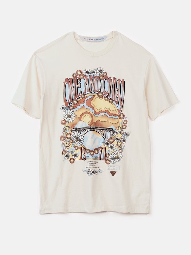 Blusa Tee Creme Estampada