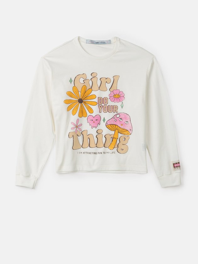 Moderna e confortável, esta blusa tee de manga longa com estampa é ideal para dias mais frescos. A estampa adiciona um toque divertido ao visual, sendo uma peça versátil para o guarda-roupa.