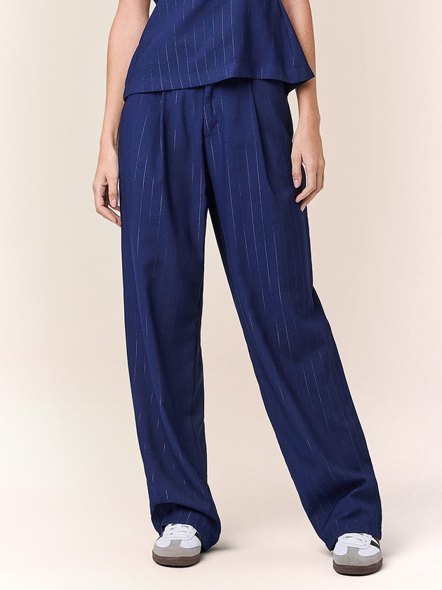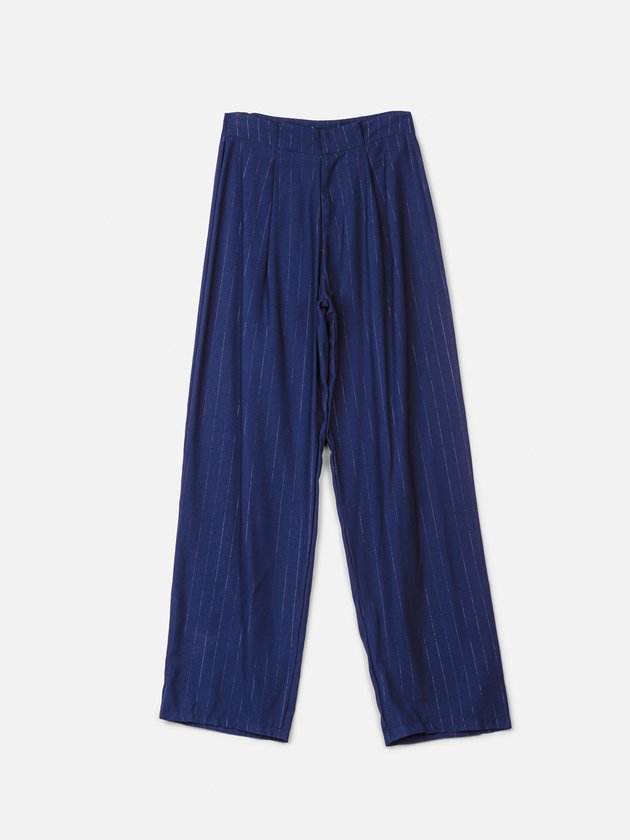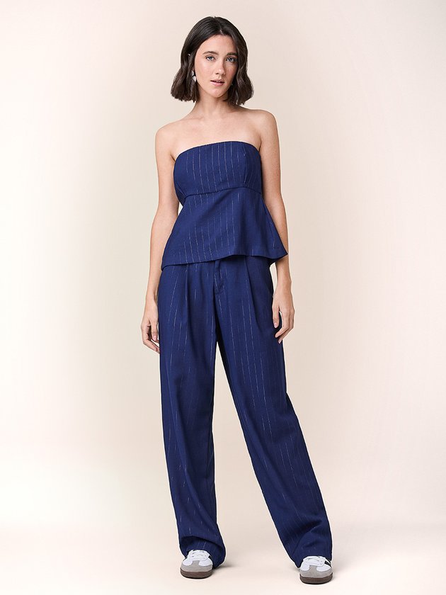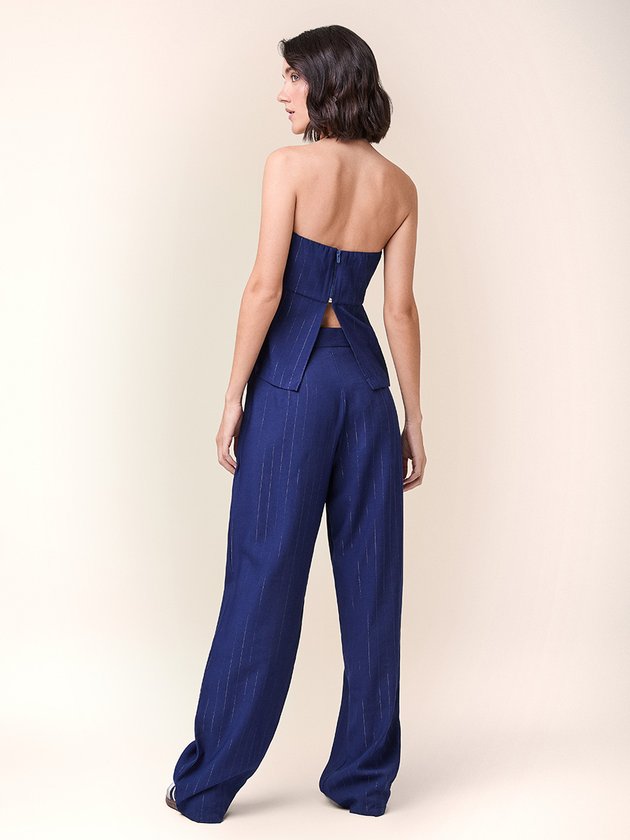 A Calça Azul com Listras combina um design clássico com um toque moderno. Com modelagem ampla e detalhes listrados sutis, é uma peça ideal para quem busca conforto e sofisticação. Perfeita para compor looks elegantes para o trabalho ou eventos casuais, ela pode ser usada com camisas leves ou blusas estruturadas, adaptando-se a diferentes estilos.