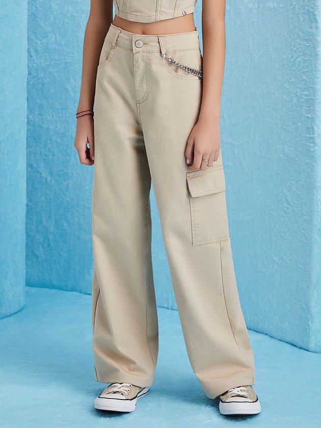 Calça Cargo Bege de Sarja
