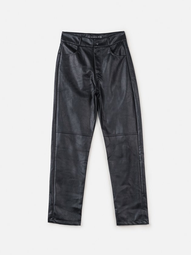 Calça preta Authoria, confeccionada em fake leather, destaca-se pelo estilo fashion. O cós com botão de pressão e passante permite ajustes personalizados, proporcionando versatilidade no styling. Essa calça é perfeita para compor looks cheios de atitude. Composição: 100% viscose. Revestido: 100% poliuretano. Ref.: T9353