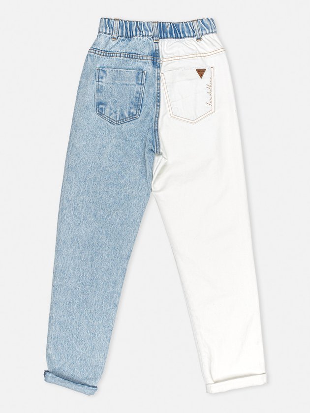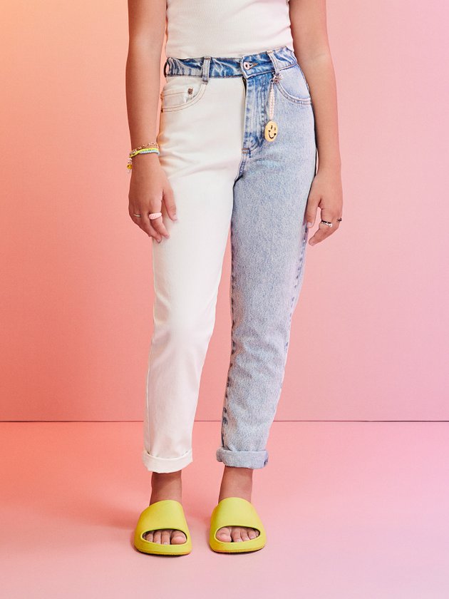 A Calça Duas Cores I’am foi desenvolvida em jeans e sarja. Nos detalhes a peça traz elástico no cós, botão e zíper para aumentar a praticidade das garotas. Finalizando com etiqueta decorativa no bolso costas, suas composições podem ser com regata, t-shirt ou cropped. Composição: 100% algodão. Ref.: R3115