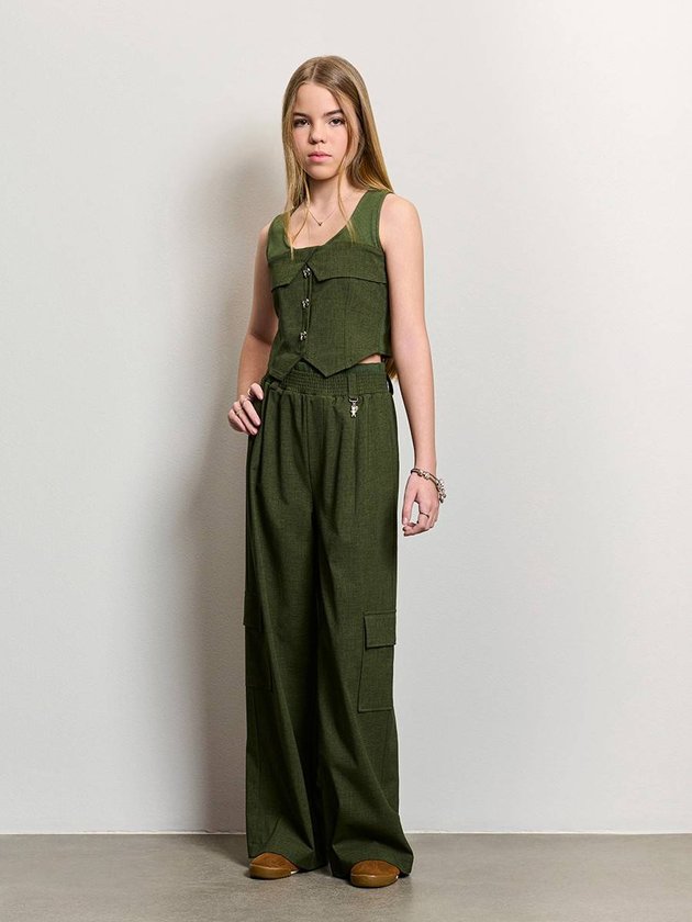 Essa calça verde cargo traduz a essência moderna da coleção, unindo a elegância da alfaiataria com o toque utilitário que está super em alta. O tecido apresenta textura leve e discreta, trazendo profundidade e deixando a peça visualmente mais sofisticada. A cintura com elástico garante conforto total, enquanto o cós com passantes permite variações com cintos. Os bolsos laterais amplos com abas reforçam o mood cargo de forma atualizada. A modelagem ampla e reta alonga a silhueta, criando movimento e um caimento impecável. O detalhe do pingente metálico de ursinho na frente adiciona personalidade, funcionando como uma assinatura cool da Authoria. Essa calça funciona tanto com camisas estruturadas e tricots quanto com moletons cropped para um visual street elegante. Uma peça versátil, estilosa e pronta para compor looks impactantes em qualquer ocasião. Ref.: R5467