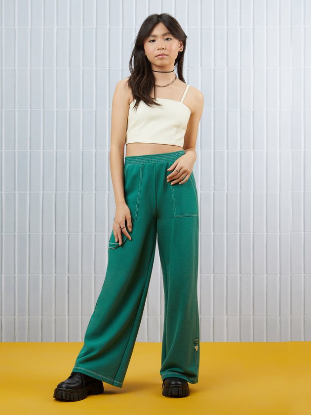 A calça de moletom verde I Am é uma peça confortável e versátil. Com cintura elástica e bolso funcional, ela oferece praticidade no uso diário. Sua costura contrastante off dá um toque de estilo à peça, enquanto o modelo amplo proporciona liberdade de movimento. Composição. 100% algodão. Ref.: R3626