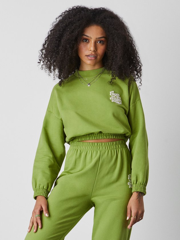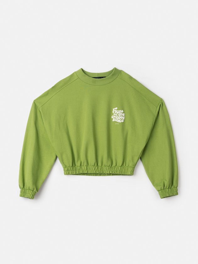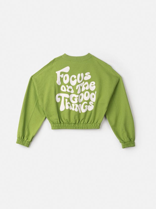 Confeccionado no conforto do moletom verde sem felpa, o casaco Authoria traz conforto e praticidade para o look das garotas. Conta também com decote em ribana, estampa frente e costas de lettering, elástico na barra e no punho. Impossível não amar né? Composição: 100% algodão. Ref.: T8570