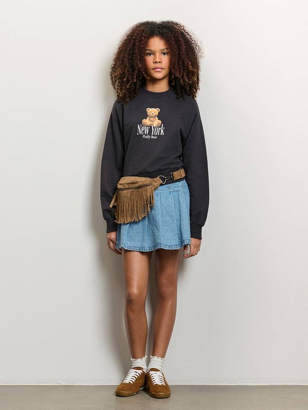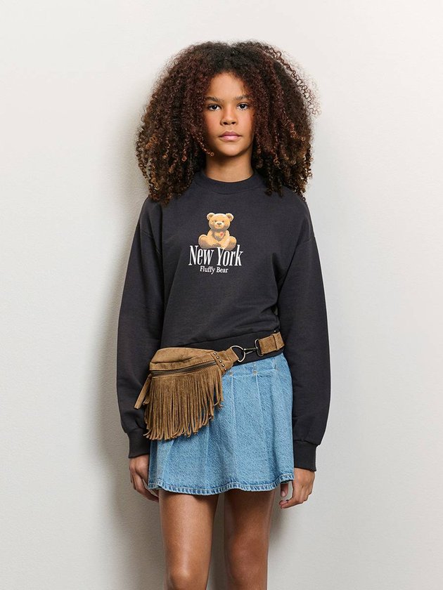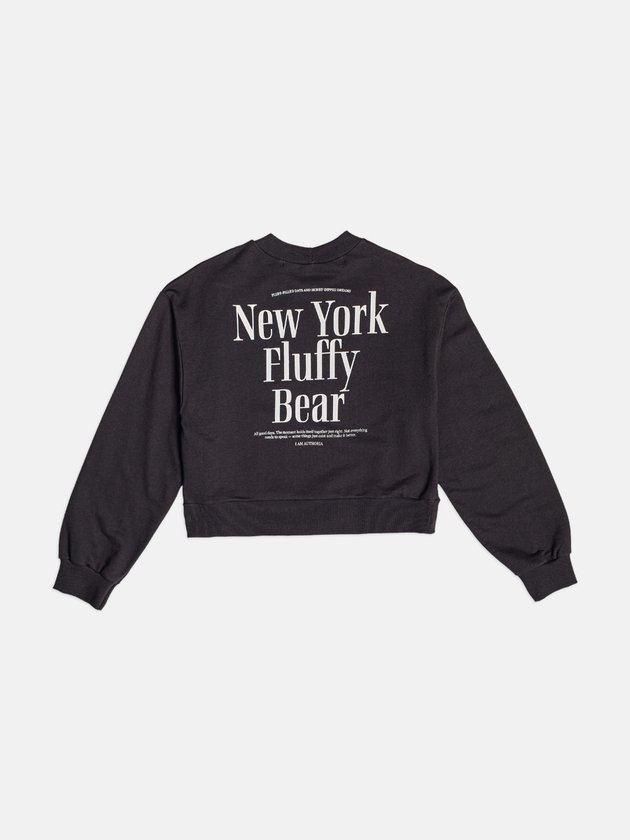 O moletom Fluffy Bear chega em marrom profundo, com estampa central do ursinho em efeito plush e lettering New York Fluffy Bear, criando um visual que mistura delicadeza e estilo urbano. A modelagem cropped traz modernidade, acompanhada por punhos e barra canelados que definem o shape e mantêm o conforto marca registrada da Authoria. O charme fica ainda maior com o pingente metálico em forma de urso aplicado na barra, um detalhe exclusivo que confere personalidade extra. Essa peça funciona tanto para looks casuais quanto para composições mais fashionistas, especialmente quando combinada com jeans wide, saias texturizadas ou sobreposições leves. Para realçar o mood da coleção Backstage, aposte em acessórios prateados e peças com texturas, criando um equilíbrio entre fofura e sofisticação. Ref.: R5457