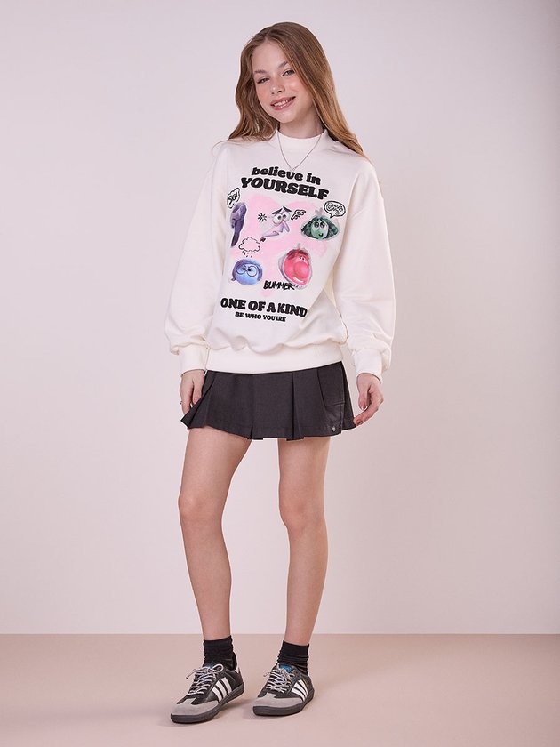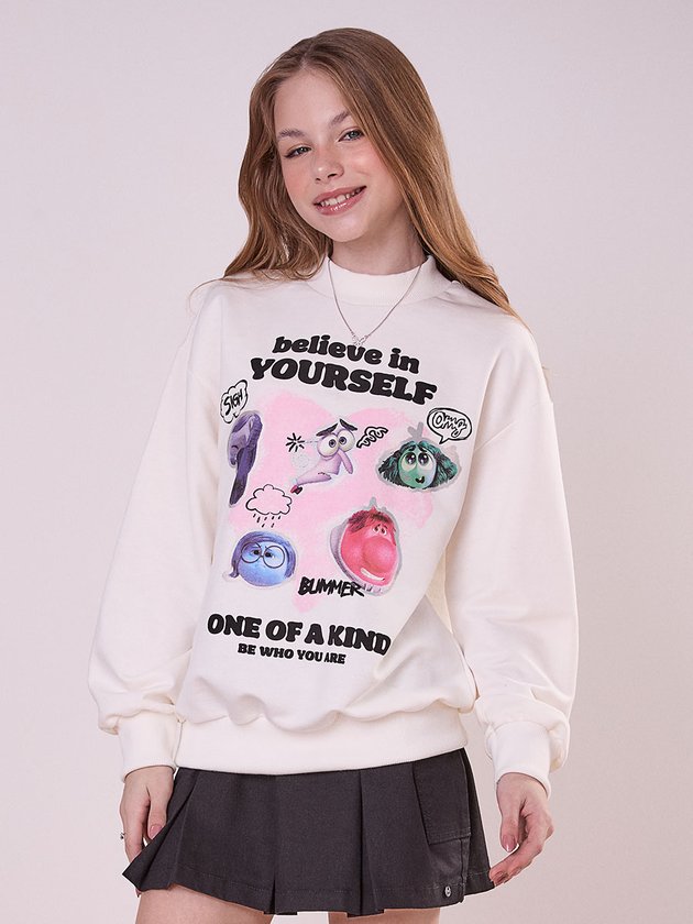 O casaco moletom é uma peça chave para as fashionistas. Este casaco em moletom traz gola, punho e barra em ribana, garantindo conforto e estilo. Na frente, a estampa dos personagens de Divertida Mente adiciona um toque divertido e vibrante. Nas costas, uma plaquinha decorativa aplicada abaixo do decote completa o visual moderno. Ideal para looks descontraídos com muita personalidade. Ref.: R5031