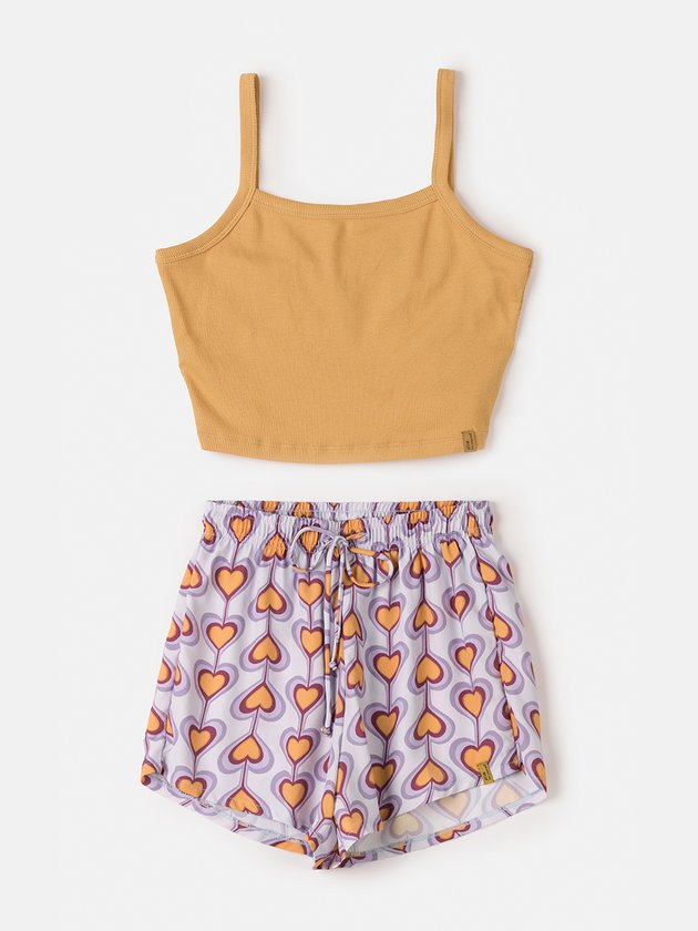 Mood da noite - A hora do descanso merece um look lindo e confortável do jeito que elas amam. O pijama Authoria é composto por blusa desenvolvida em ribana e short feito em tecido com estampa rotativa de corações, um conjunto leve e confortável para as garotas. Traz elástico na cintura e etiqueta decorativa da marca. Composição – Blusa: 98% algodão e 2% elastano. Short: 100% poliéster. Ref.: T8830