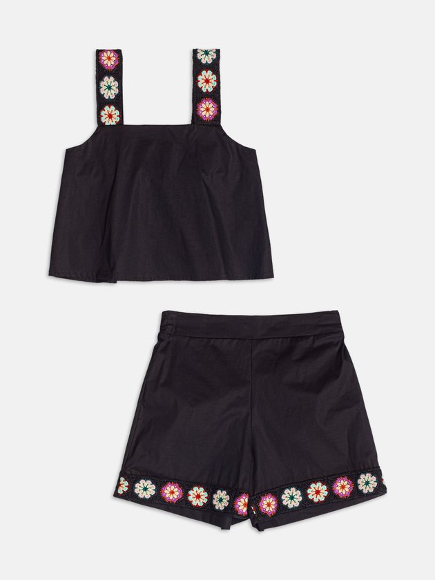 Conjunto Preto com Flores em Crochê