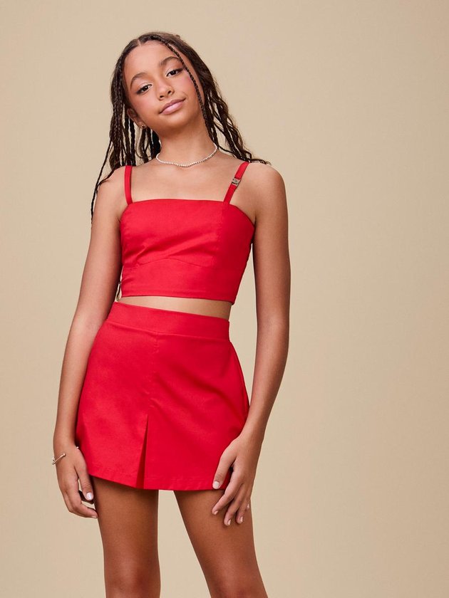 O vermelho marca presença em um conjunto de alfaiataria poderoso. A cor intensa somada à modelagem impecável cria um look elegante e cheio de atitude.