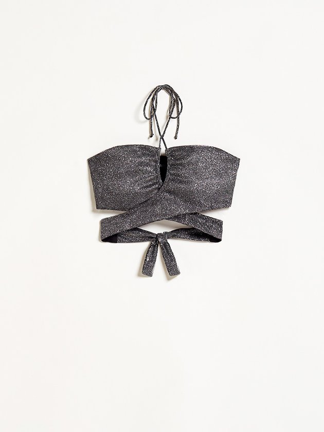 O Cropped de glitter Authoria é perfeito para ocasiões especiais. Com seu brilho deslumbrante, pode ser usado de duas formas diferentes, proporcionando versatilidade ao look. Seu charme está na amarração, que adiciona um toque especial e único. Composição: 100% poliéster. Ref.: T8896