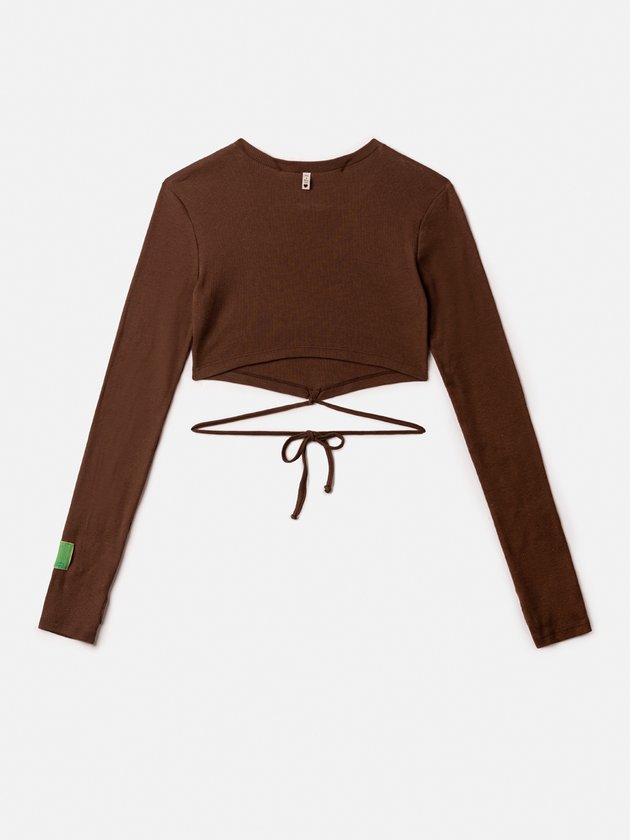 Cropped Marrom Manga Longa