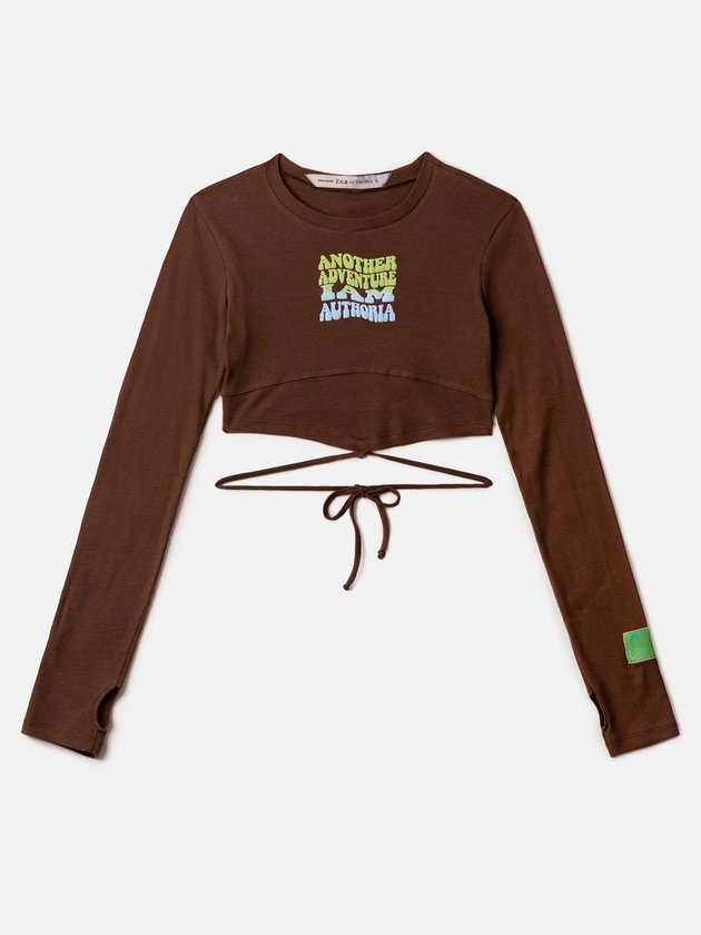 A blusa manga longa I Am foi confeccionada em malha canelada na cor chocolate. Traz modelagem cropped com estampa frontal e cordão para amarrar na cintura. Uma peça super charmosa com design fashionista que faz ótimas combinações. Composição: 98% poliéster e 2% elastano. Ref.: R3420