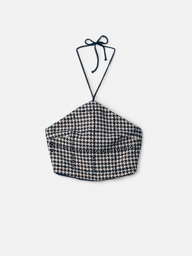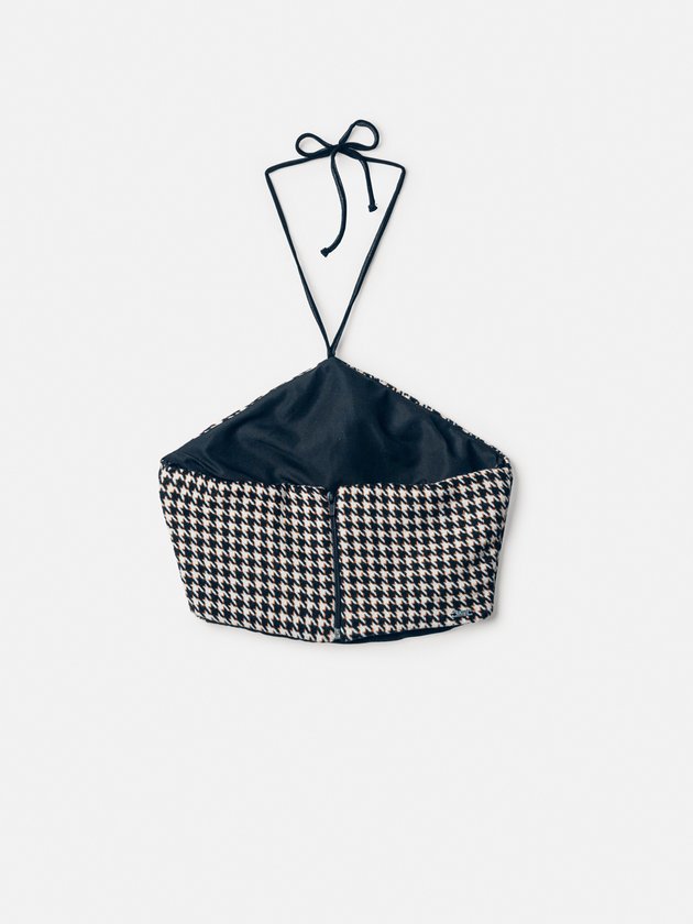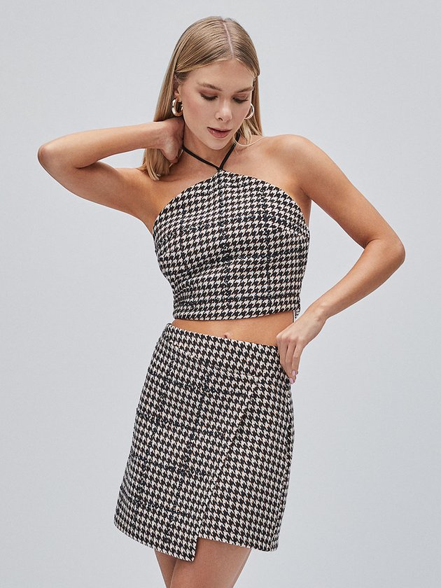 O cropped de tweed Authoria traz design único que compõe looks estilosos e modernos. Ajustando melhor a peça ao corpo, traz alças para amarrar e lateral com zíper. Finaliza com plaquinha de metal personalizada. Composição: 54% poliéster, 19% acrílico, 10% liocel, 9% poliamida, 6% algodão e 2% lã. Ref.: T9320