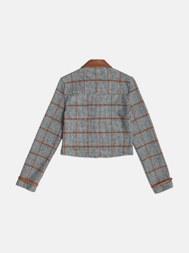 Jaqueta Cropped Xadrez com Detalhes de Fake Leather Toffee