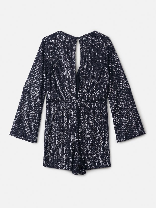 O deslumbrante macaquinho de paetê, é uma peça que redefine o estilo para as fashionistas. Este macaquinho é uma verdadeira expressão de moda, combinando brilho, conforto e estilo de uma maneira única. A abertura no decote das costas juntamente com o brilho sutil dos paetês, cria uma estética moderna e deslumbrante que certamente atrairá olhares. O decote transpassado na frente com fechamento em botão colchete, é um elemento elegante que adiciona um toque de charme à peça. Composição: 97% Poliéster, 3% Elastano. Ref.: T9438