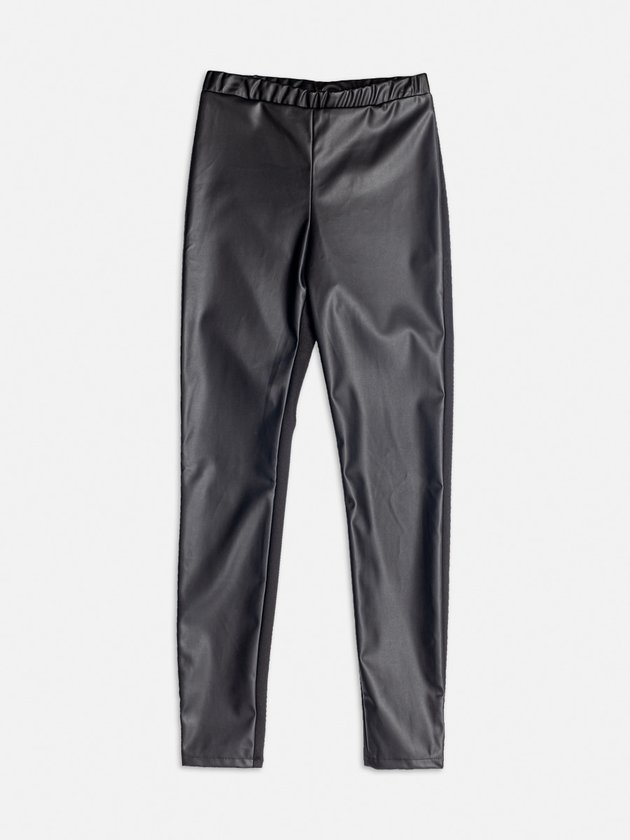 A calça legging I Am é confeccionada com frente em fake leather e costas em malha, sua modelagem justa permite maior conforto para as garotas, em seus detalhes conta com elástico no cós e placa de metal. Uma peça clássica que as garotas vão amar. Composição – Frente: 100% poliuretano e 100% Poliéster. Costas: 96% poliéster e 4% elastano. Ref.: R4192