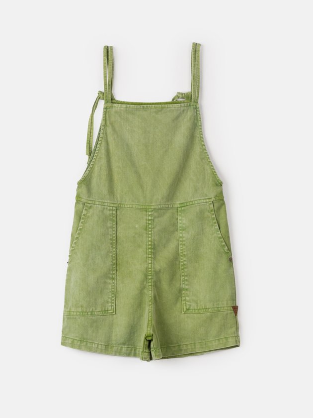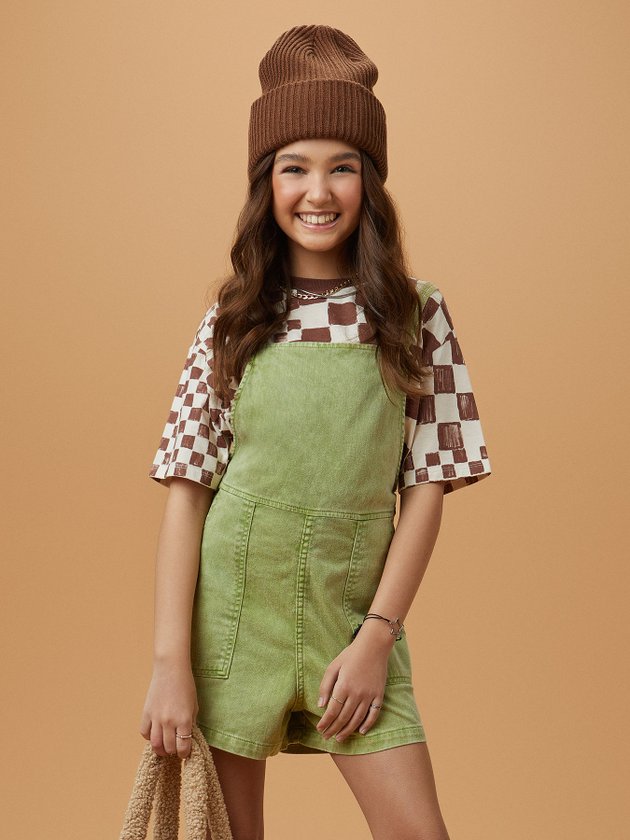 Prático e descolado, este macaquinho de sarja verde oliva é ideal para composições casuais. A cor e a textura de sarja garantem um visual moderno e confortável.