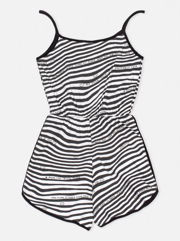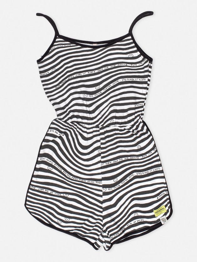 O Macaquinho I’am foi desenvolvido em malha canelada com estampa exclusiva, nos detalhes conta com alças em friso preto, elástico na cintura e etiqueta decorativa próximo a barra. Uma peça especial que não pode faltar no guarda roupa das garotas. Composição: 98% Algodão e 2% Elastano. Ref.: R3162