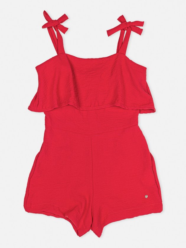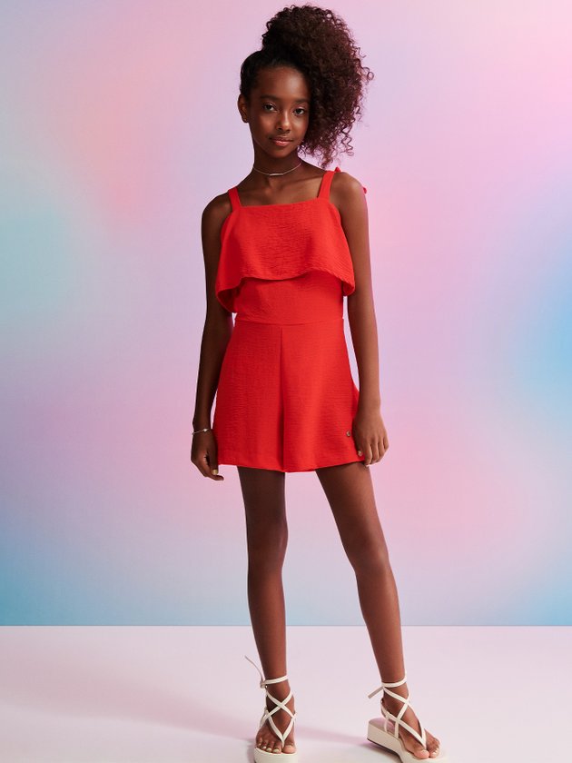 O macaquinho vermelho I’am foi desenvolvido em tecido leve e confortável com alças para fazer laço. Traz em seus detalhes busto com babados e zíper nas costas deixando a peça ainda mais prática. Seu design fashion faz combinações perfeitas para as festas. Composição: 100% poliéster. Ref.: R3358