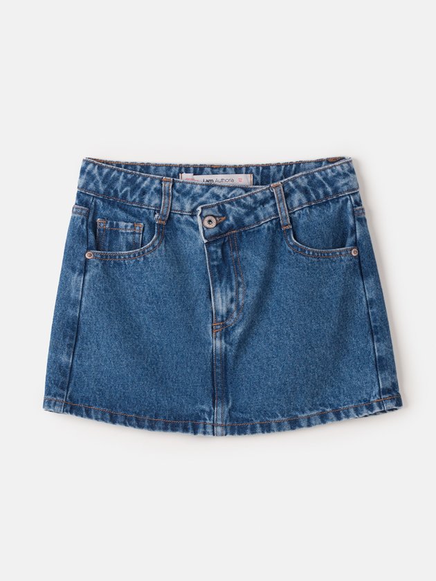 A saia jeans I Am foi feita com cós torcido super fashion que traz ainda mais tendência para os looks das garotas. Nos detalhe conta com bolsos funcionais, abertura com botão e zíper de metal. Faz ótimas combinações com t-shirt e cropped. Composição: 100% algodão. Ref.: R3753