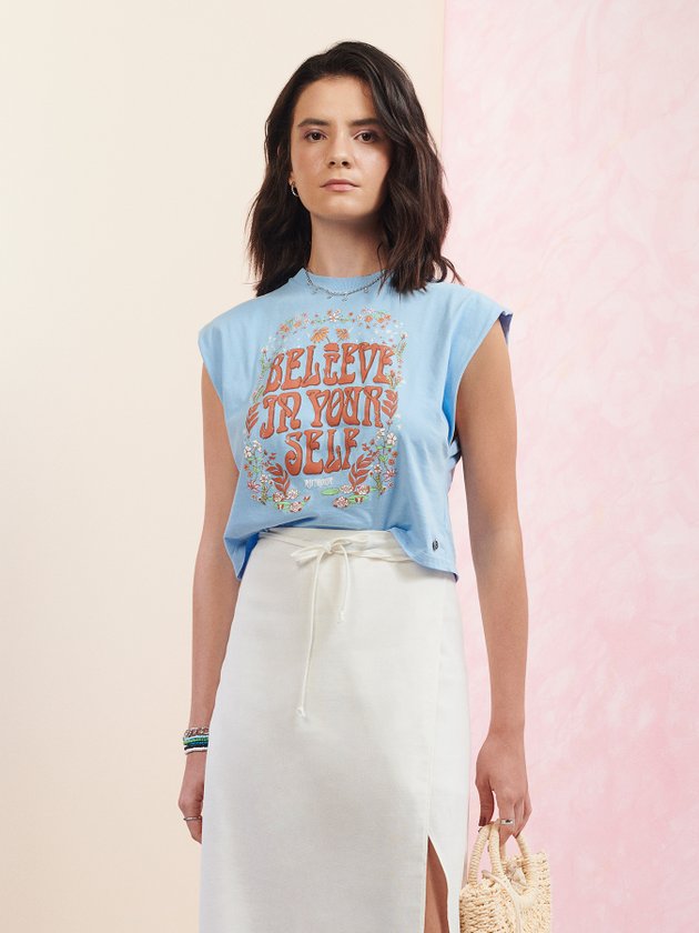 Confeccionada em malha na cor azul, a regata muscle conta com modelagem moderna e atual, sua cor foi escolhida para compor looks com diversas peças e cores, uma blusa versátil capaz de fazer diversos looks estilosos. Conta com estampa na parte da frente e plaquinha de metal costurada na barra. Composição: 100% algodão. Ref.: T8454