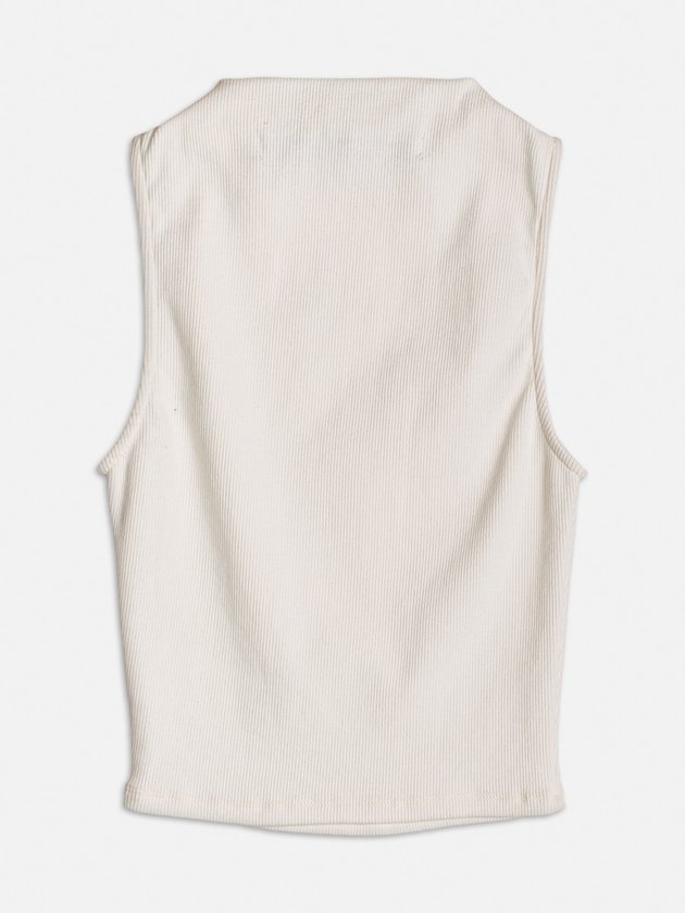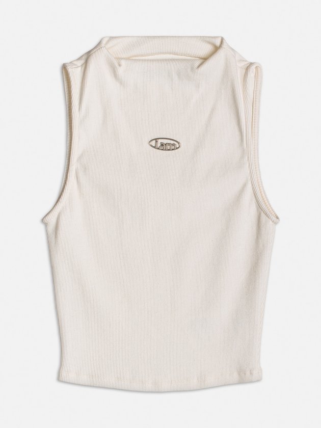 Básica com toque fashion, a regata off white em ribana ganha charme com o logo metálico "I Am" no centro. Modelagem justa e decote alto para um visual clean e moderno.
