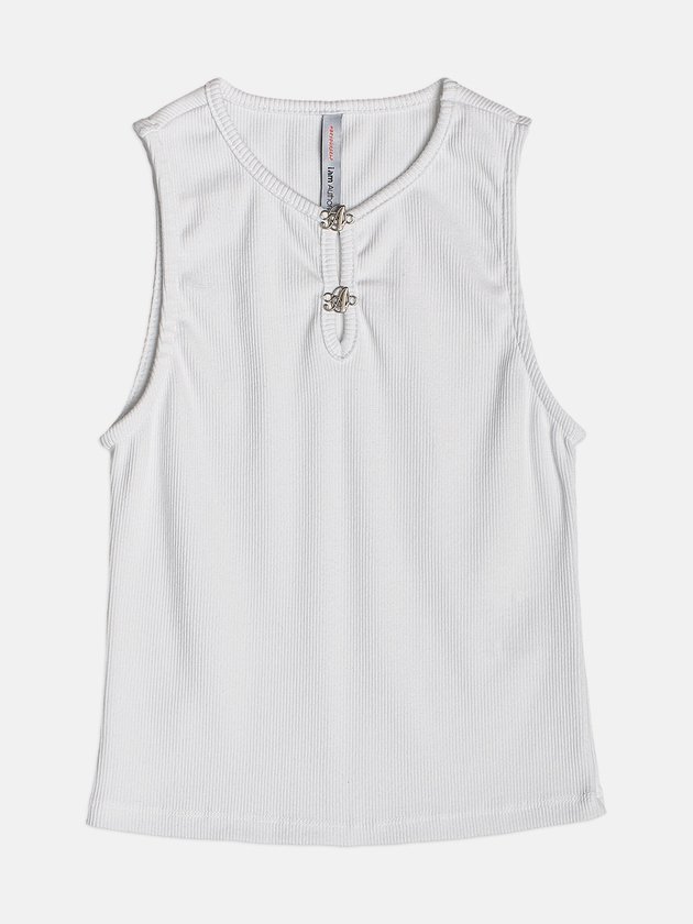 Essa regata canelada off white traz o mesmo mood da versão verde, mas com um visual ainda mais clean e iluminado. Os fechos metálicos no decote adicionam personalidade à peça, enquanto o tecido macio veste super bem e abraça o corpo com conforto. Versátil, fresh e fácil de combinar perfeita para propostas clássicas, românticas ou modernas. Ref.: R5768