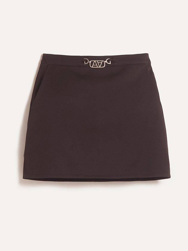 A Saia preta Authoria é confeccionada em tecido de alta qualidade, garantindo conforto e elegância. Possui detalhe em metal personalizado na parte frontal, que adiciona um toque sofisticado à peça. Sua abertura nas costas com zíper proporciona praticidade e um ajuste perfeito. composição: 95% poliéster e 5% elastano. Ref.: T9110