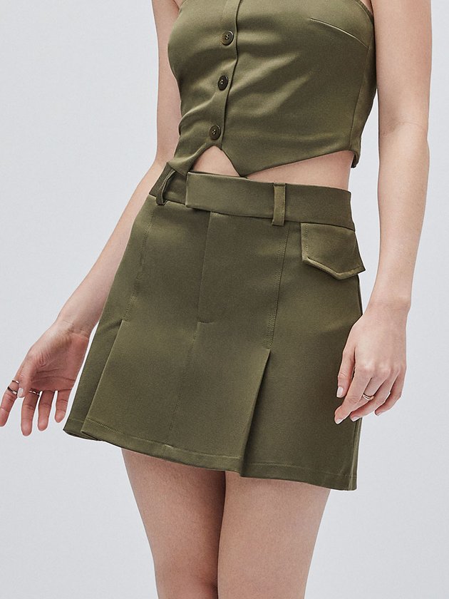 Saia de Alfaiataria Verde com Pregas