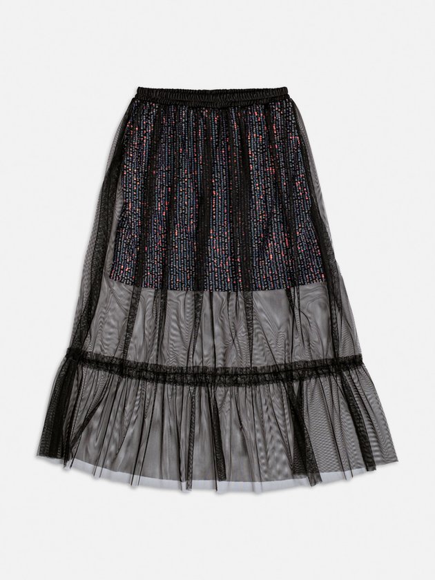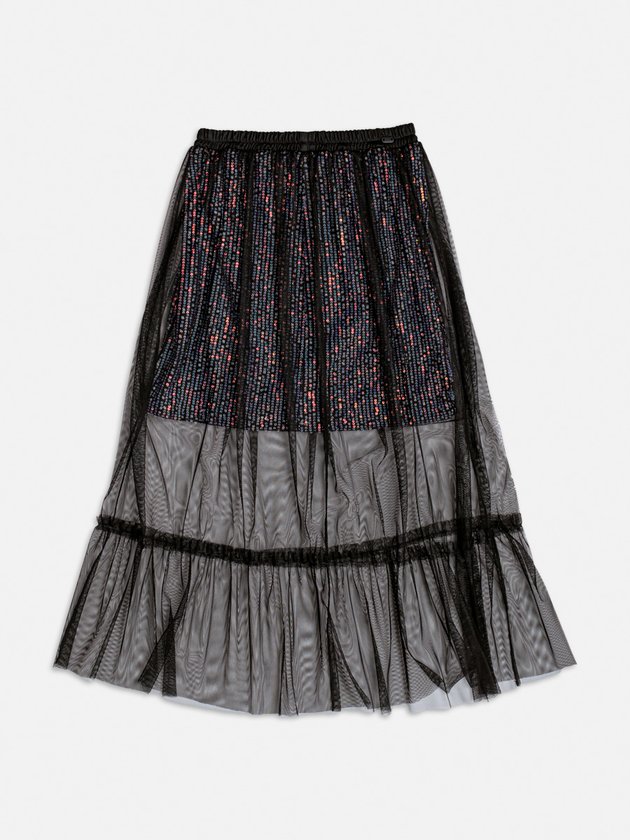 Saia de Paetê com Sobreposição de Tule