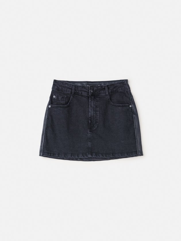 A Saia black Authoria é uma peça estilosa, feita em sarja de alta qualidade, apresenta um design com jeans frontal e fake leather na parte traseira. Possui passante para cinto, permitindo diferentes opções de estilo e personalização. Com seu design atual, segue a tendência da moda, sendo uma escolha cool para qualquer ocasião. Composição: Jeans: 98% algodão e 2% elastano; Fake Leather: 100% viscose; Revestimento: 100% poliuretano . Ref.: T9549