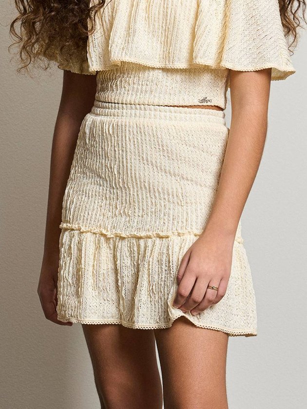 Saia Bege Texturizada com Babados