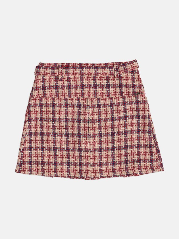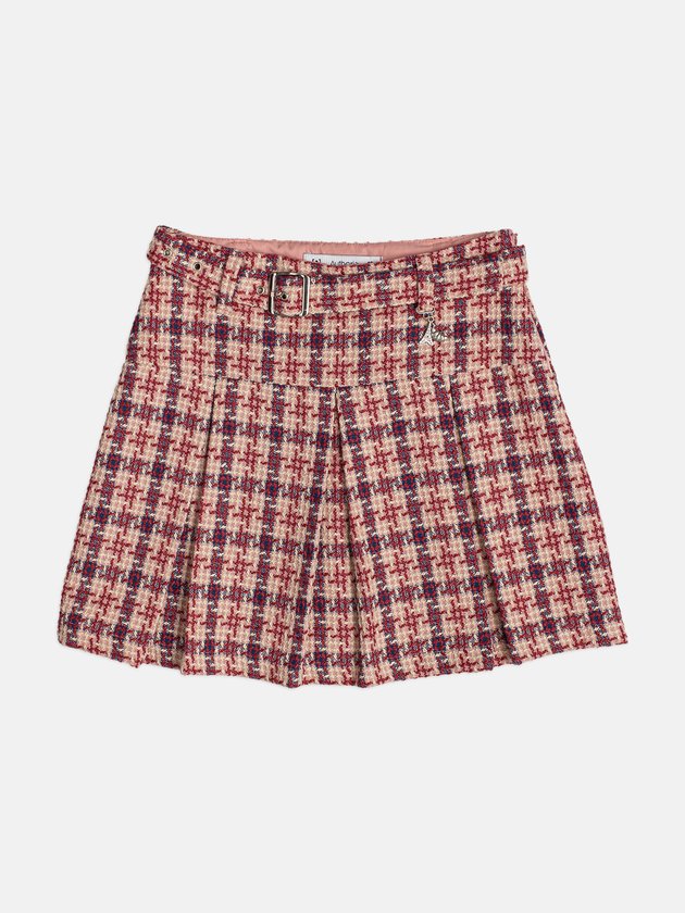 Saia de Tweed Cherry com Pregas e Cinto