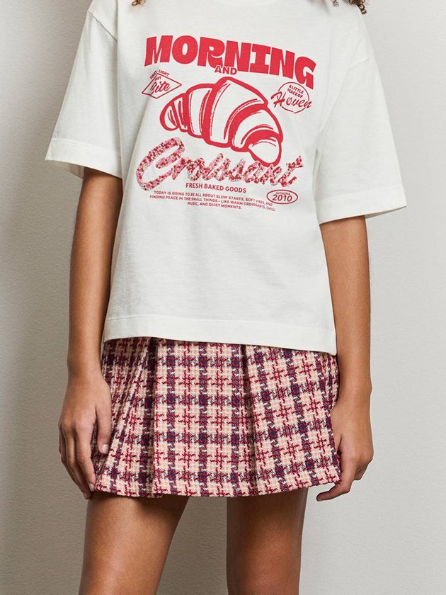 A saia em tweed combina textura marcante, estrutura e um acabamento sofisticado. O padrão geométrico misturando tons de rosé, creme e vermelho cereja cria profundidade visual e deixa a peça ainda mais elegante. O cinto forrado no mesmo tecido, com fivela metálica, reforça o ar clássico e ajusta a cintura com charme. As pregas frontais dão movimento e caimento impecável, mantendo o shape alinhado. É uma peça que conversa perfeitamente com looks de inverno refinados, funcionando tanto com tricôs quanto com camisas de alfaiataria. Ref.: R5511