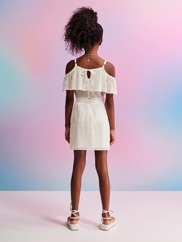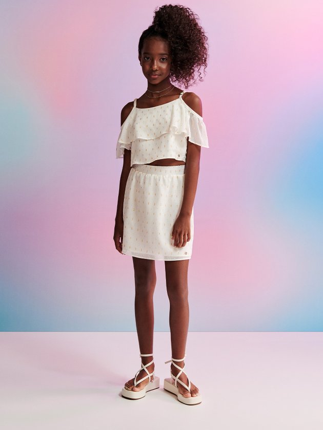 A Saia off white I’am foi confeccionada em tecido leve com elástico no cós e modelagem mais soltinha, as garotas vão amar. Seus looks podem ser combinados com t-shirt ou cropped. Finalizando seu design com ainda mais autenticidade ela traz plaquinha de metal personalizada da marca. Composição: 100% poliéster. Ref.: R3279